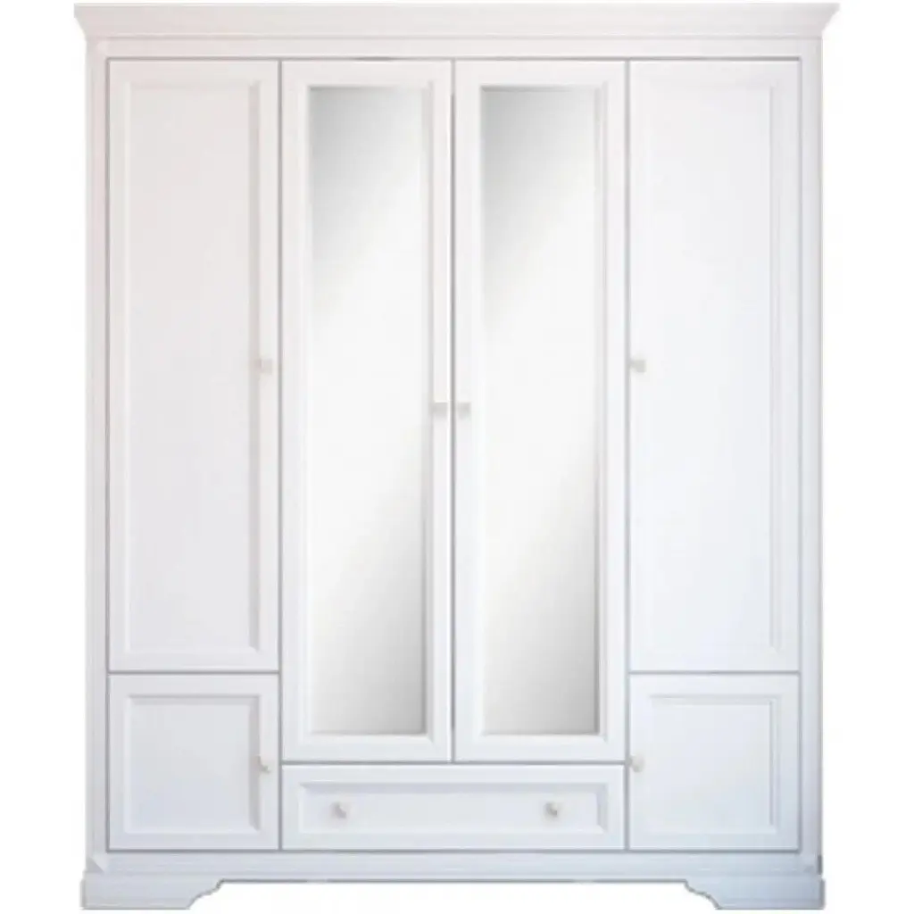 Розміри шафи дозволяють вмістити велику кількість речей, зберігаючи їх в ідеальному порядку і при цьому займаючи мінімальну кількість місця в кімнаті. В конструкції шафи передбачено 4 двері та 1 висувний ящик, обладнаний телескопічними направляючими повного висування. Шафа виготовлена з якісних та екологічно чистих матеріалів ДСП/МДФ, що гарантує її довговічність та надійність.