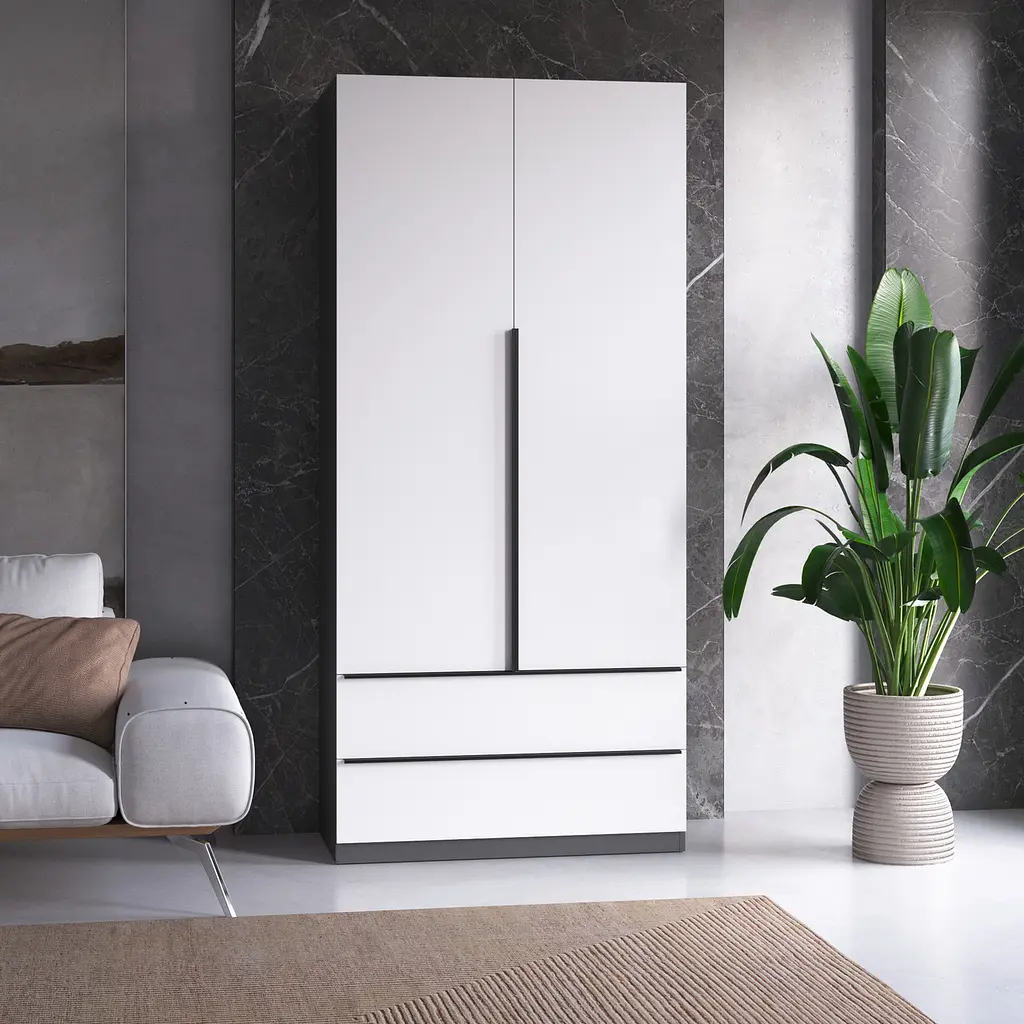 Шафа для одягу Vays M-30 - це стильне та функціональне рішення для дому. Виготовлена з ЛДСП високої якості, вона поєднує в собі сучасний дизайн, місткість і надійність. Завдяки продуманому наповненню - дві шухляди, штанга для вішаків та полиці - шафа зручно підходить для зберігання одягу, білизни, аксесуарів і взуття. Ідеально впишеться у спальню, вітальню або передпокій, додаючи простору охайності та естетики.