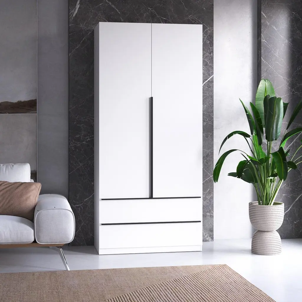 Шафа для одягу Vays M-30 - це стильне та функціональне рішення для дому. Виготовлена з ЛДСП високої якості, вона поєднує в собі сучасний дизайн, місткість і надійність. Завдяки продуманому наповненню - дві шухляди, штанга для вішаків та полиці - шафа зручно підходить для зберігання одягу, білизни, аксесуарів і взуття. Ідеально впишеться у спальню, вітальню або передпокій, додаючи простору охайності та естетики.