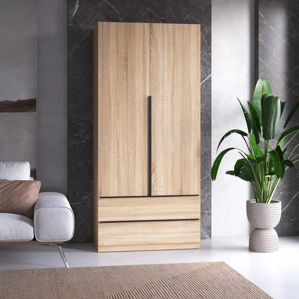 Шафа для одягу Vays M-30 - це стильне та функціональне рішення для дому. Виготовлена з ЛДСП високої якості, вона поєднує в собі сучасний дизайн, місткість і надійність. Завдяки продуманому наповненню - дві шухляди, штанга для вішаків та полиці - шафа зручно підходить для зберігання одягу, білизни, аксесуарів і взуття. Ідеально впишеться у спальню, вітальню або передпокій, додаючи простору охайності та естетики.