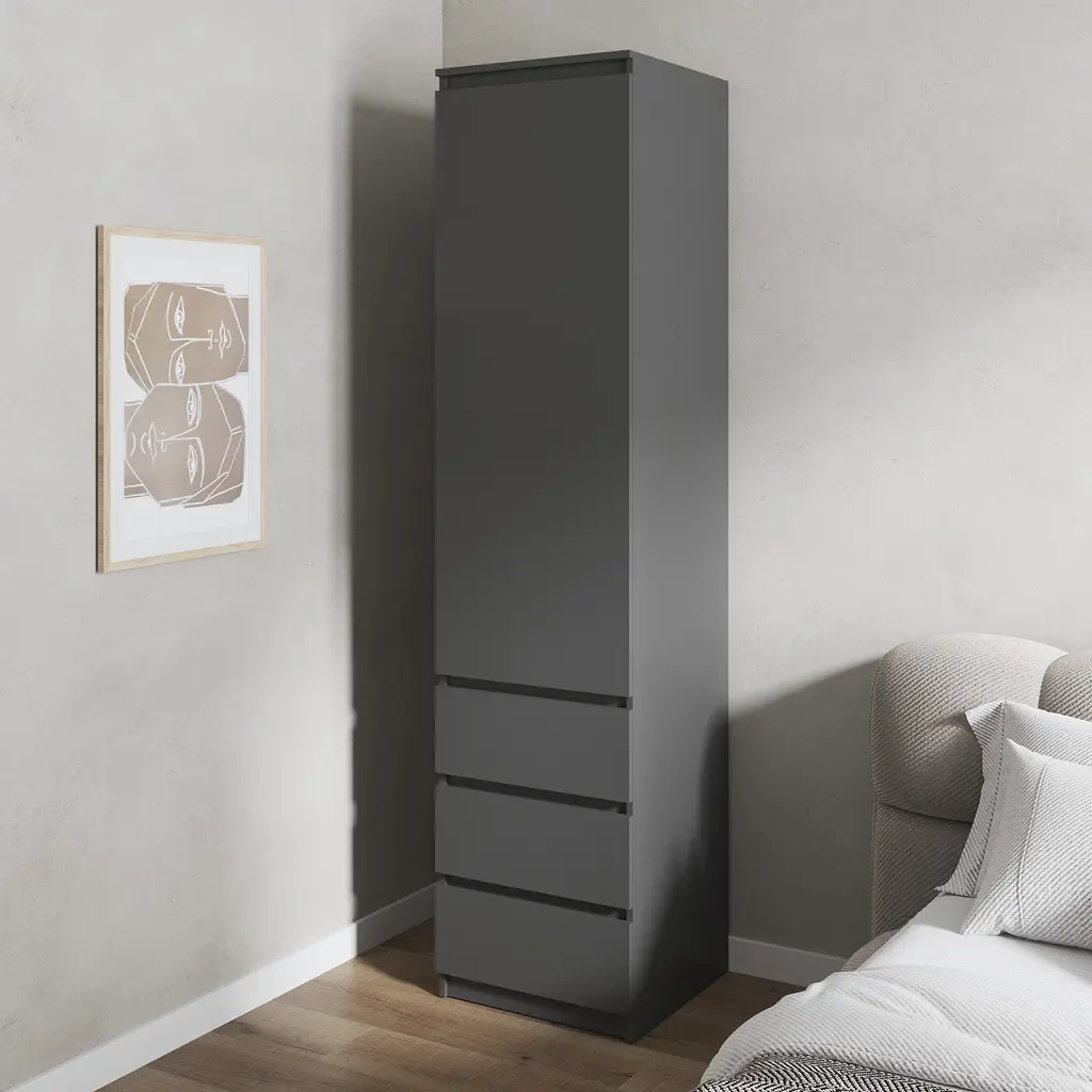 • Шафа для одягу Vays, пенал з полицями та шухлядами, без ручок R-35 Антрацит - мініатюра 1