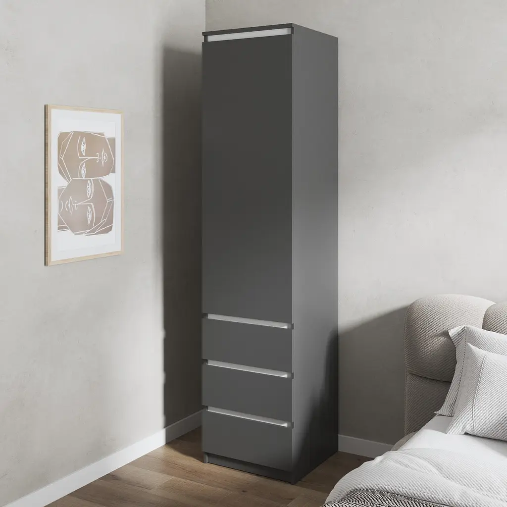 Шафа для одягу Vays, пенал з полицями та шухлядами, без ручок R-35 Антрацит-Білі планки