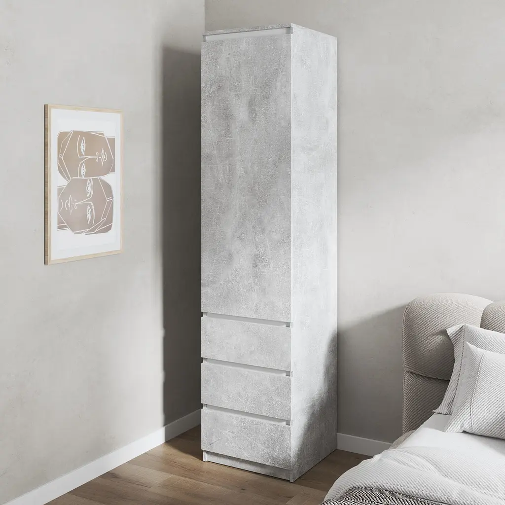 • Шафа для одягу Vays, пенал з полицями та шухлядами, без ручок R-35 Бетон-Білі планки - мініатюра 1