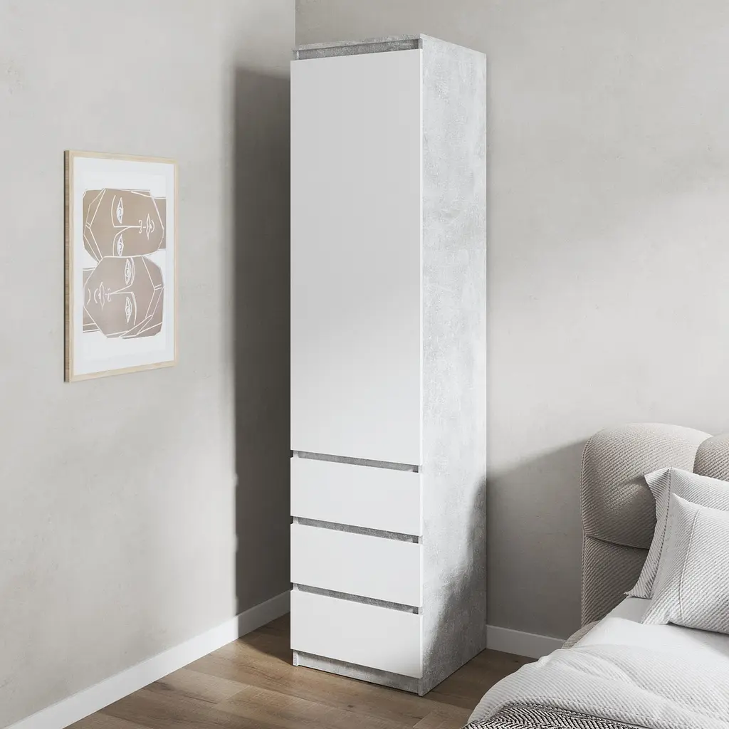 • Шафа для одягу Vays, пенал з полицями та шухлядами, без ручок R-35 Бетон-Білий фасад - мініатюра 1