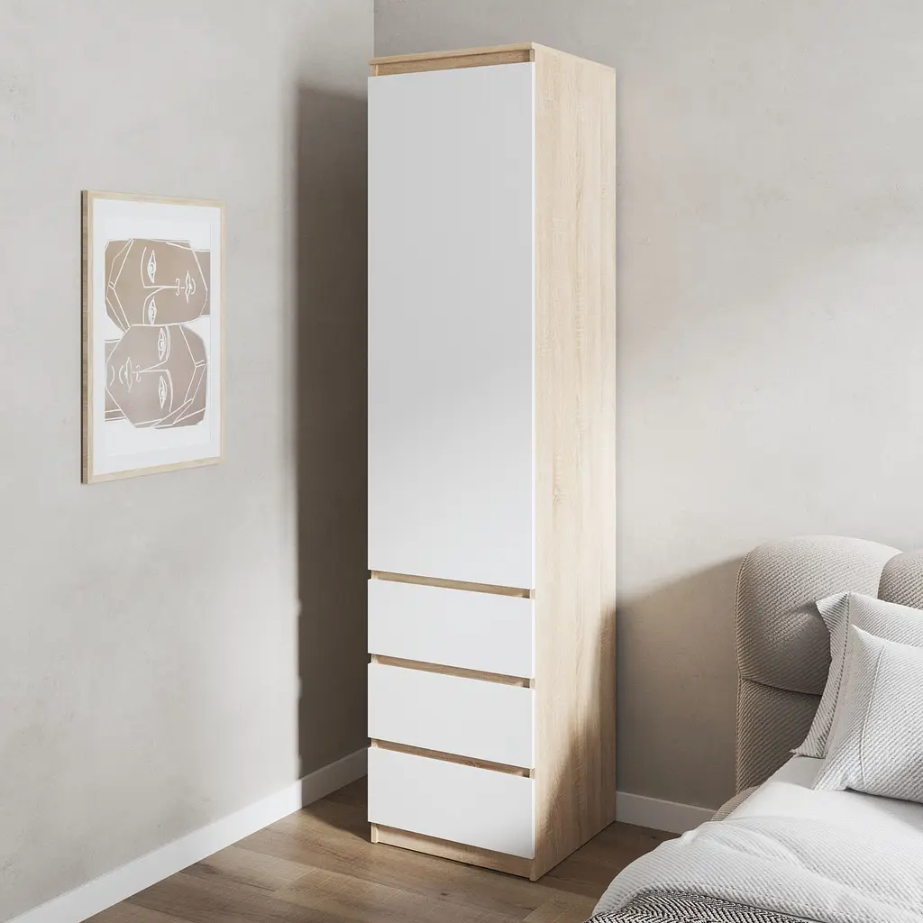 • Шафа для одягу Vays, пенал з полицями та шухлядами, без ручок R-35 Дуб Сонома-Білий фасад - мініатюра 1