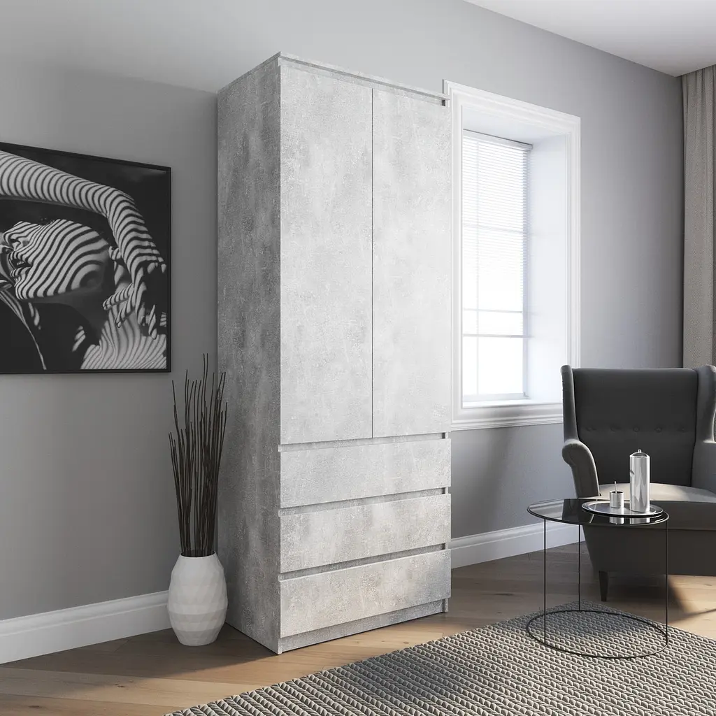 Шафа для одягу Vays R-9 - функціональне рішення для спальні, вітальні чи передпокою. Оснащена 3 місткими шухлядами та штангою для вішаків, ідеально підходить для зберігання одягу та аксесуарів. Мінімалістичний дизайн без ручок додає сучасності, а міцна конструкція з ЛДСП гарантує довговічність. Компактні розміри дозволяють розмістити шафу навіть у невеликому приміщенні.