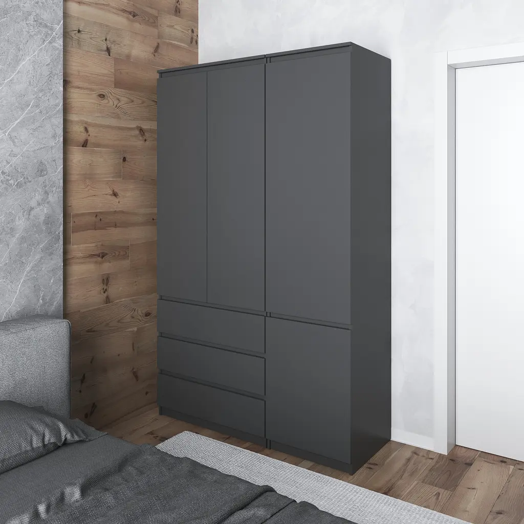 Шафа для одягу Vays в спальню з 3 шухлядами, штангою та полицями, без ручок R9+R22 Антрацит