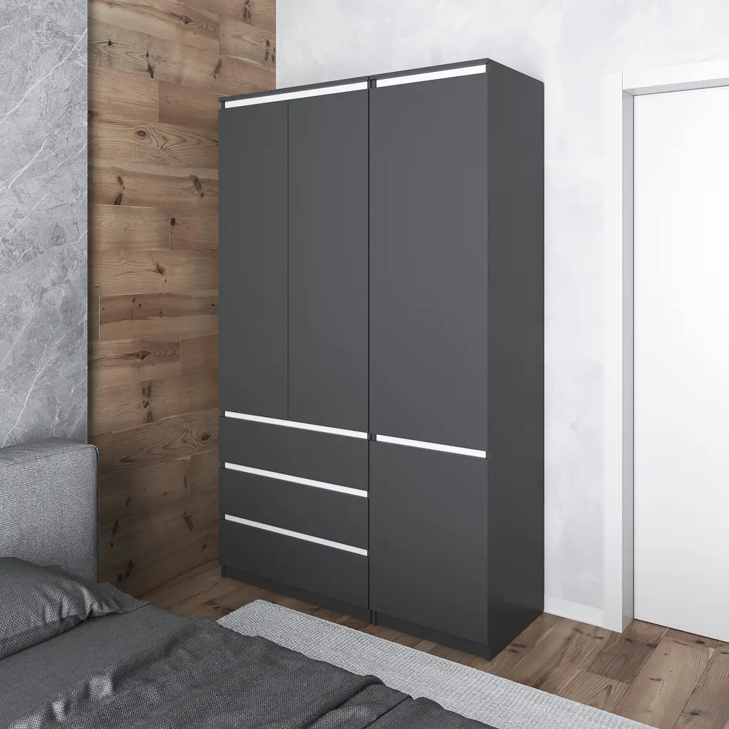 Шафа для одягу Vays в спальню з 3 шухлядами, штангою та полицями, без ручок R9+R22 Антрацит-Білі планки
