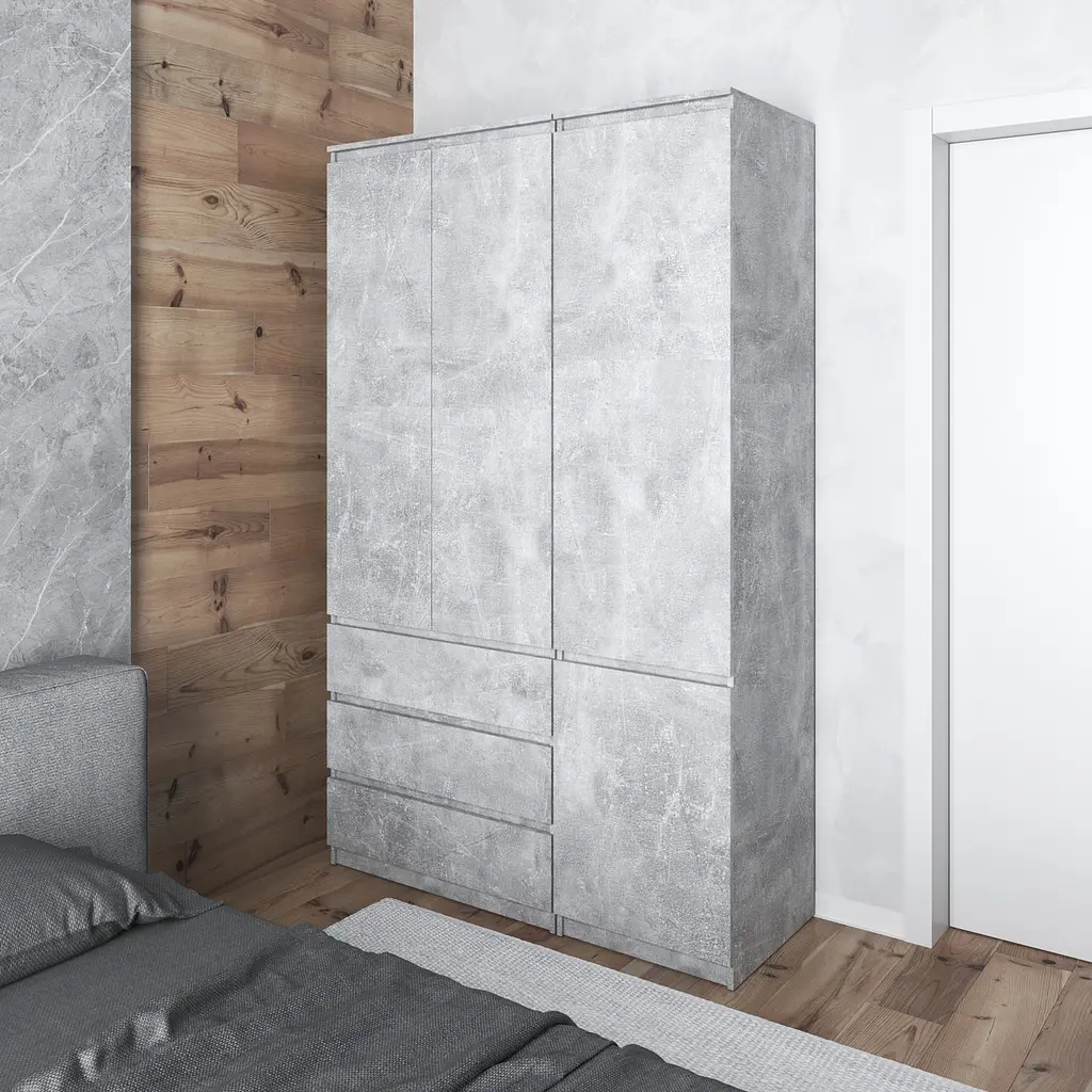 Шафа для одягу Vays в спальню з 3 шухлядами, штангою та полицями, без ручок R9+R22 Бетон
