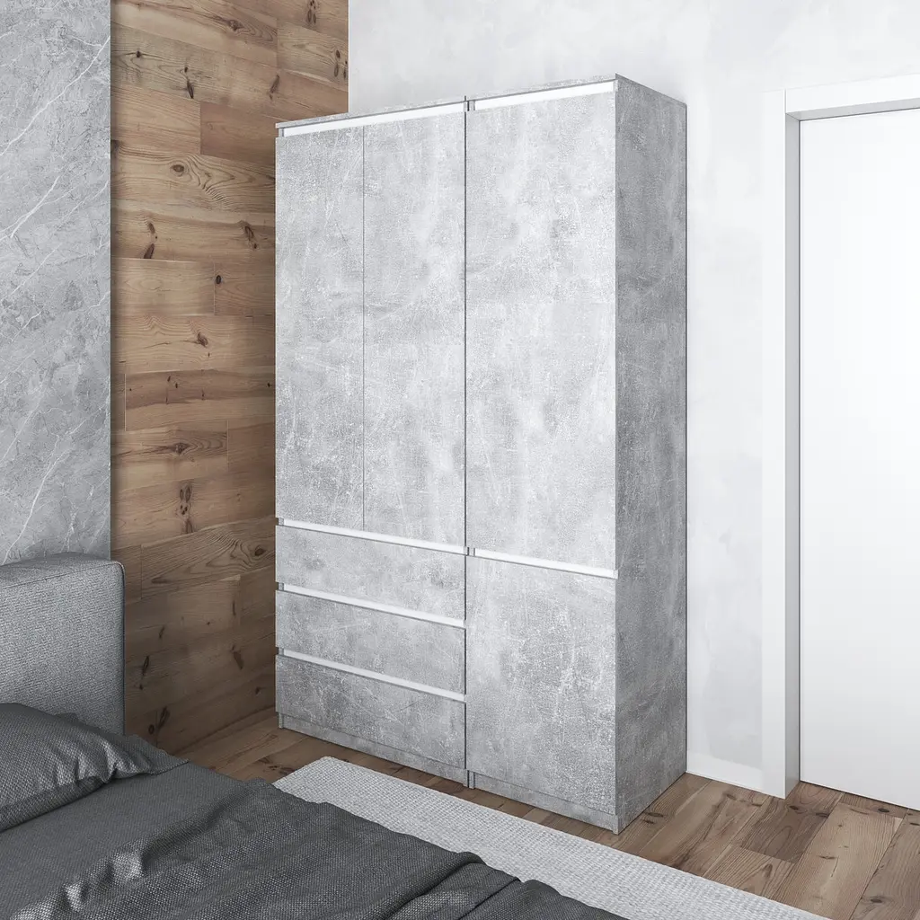 Шафа для одягу Vays в спальню з 3 шухлядами, штангою та полицями, без ручок R9+R22 Бетон-Білі планки
