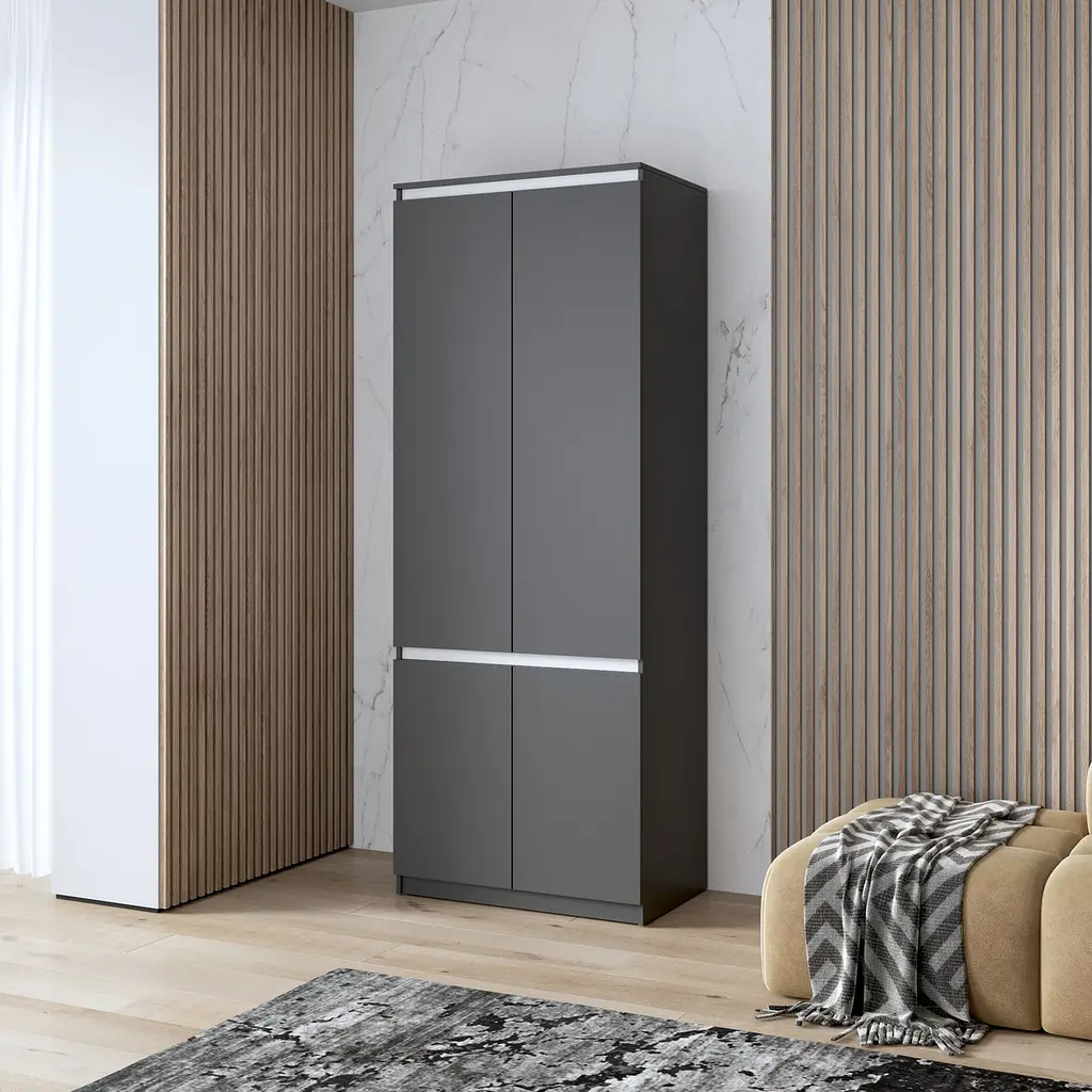Шафа для одягу Vays, з полицями, в спальню, сучасна, з фасадами без ручок R-24 Антрацит-Білі планки