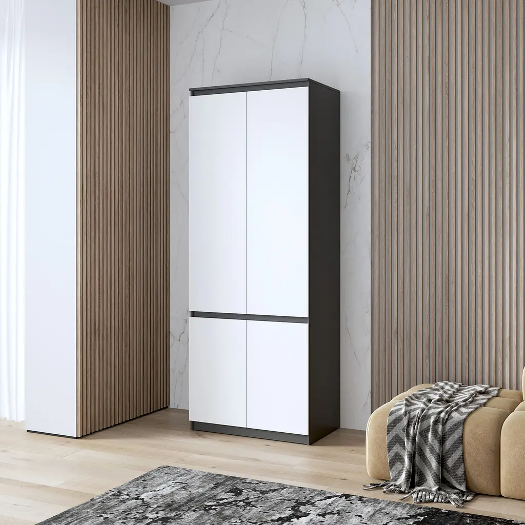 • Шафа для одягу Vays, з полицями, в спальню, сучасна, з фасадами без ручок R-24 Антрацит-Білий фасад - мініатюра 1