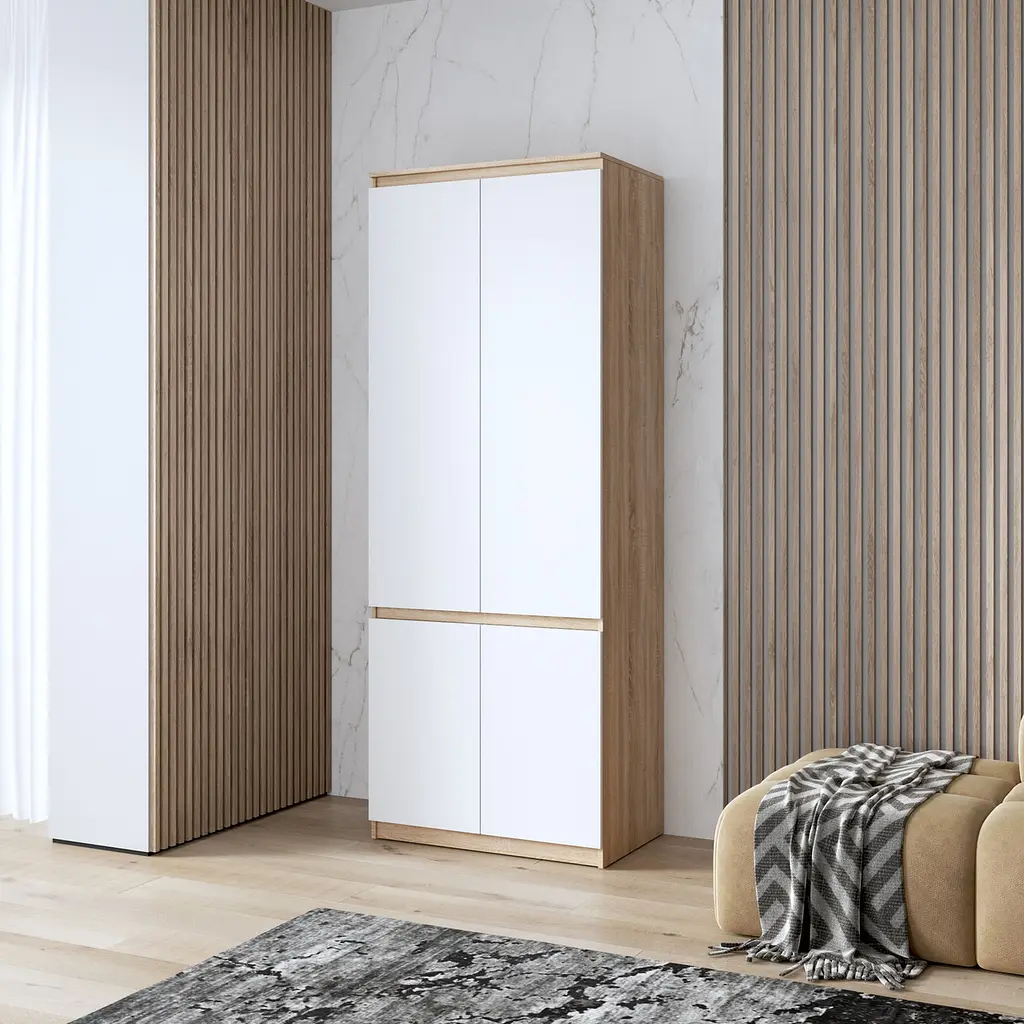 Шафа для одягу Vays, з полицями, в спальню, сучасна, з фасадами без ручок R-24 Дуб Сонома-Білий фасад