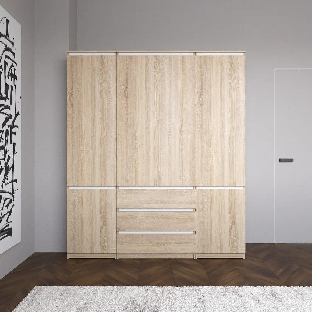 Шафа для одягу Vays зі штангою та полицями, 3 шухляди, комплект R9+R22-2 Дуб Сонома-Білі планки