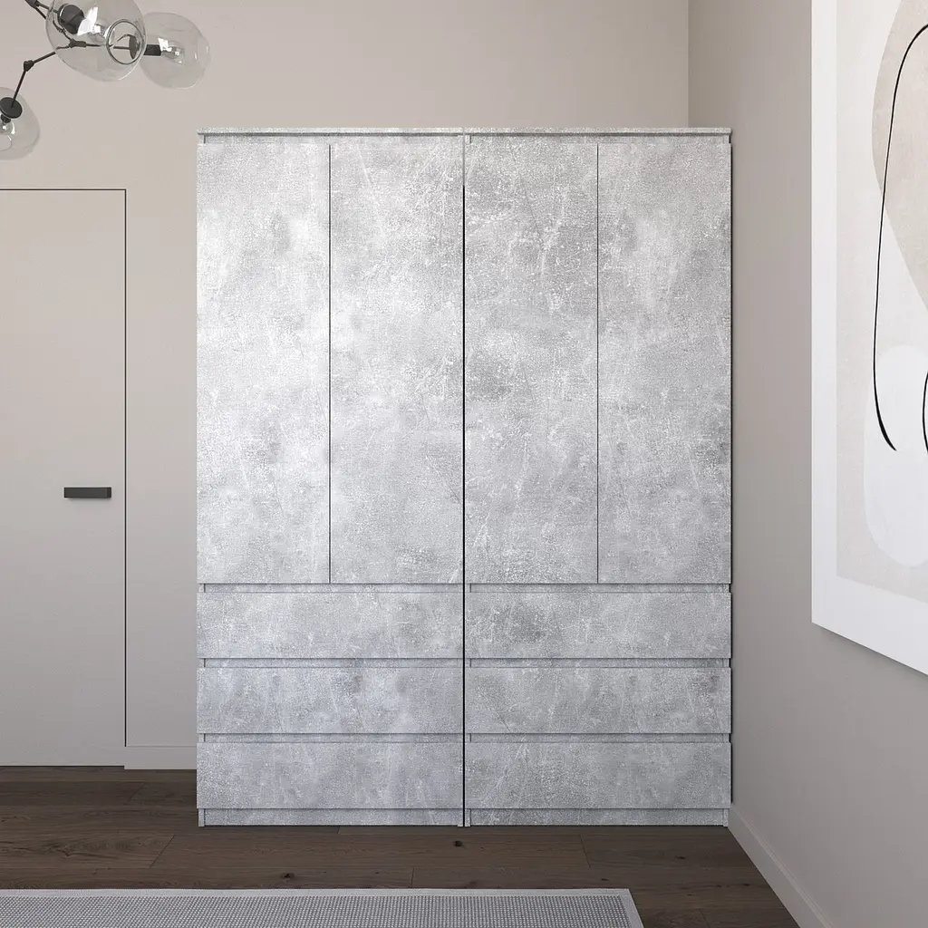 Шафа для одягу Vays зі штангою та полицями, 6 шухляд, комплект з 2 шаф R9+R16 Бетон