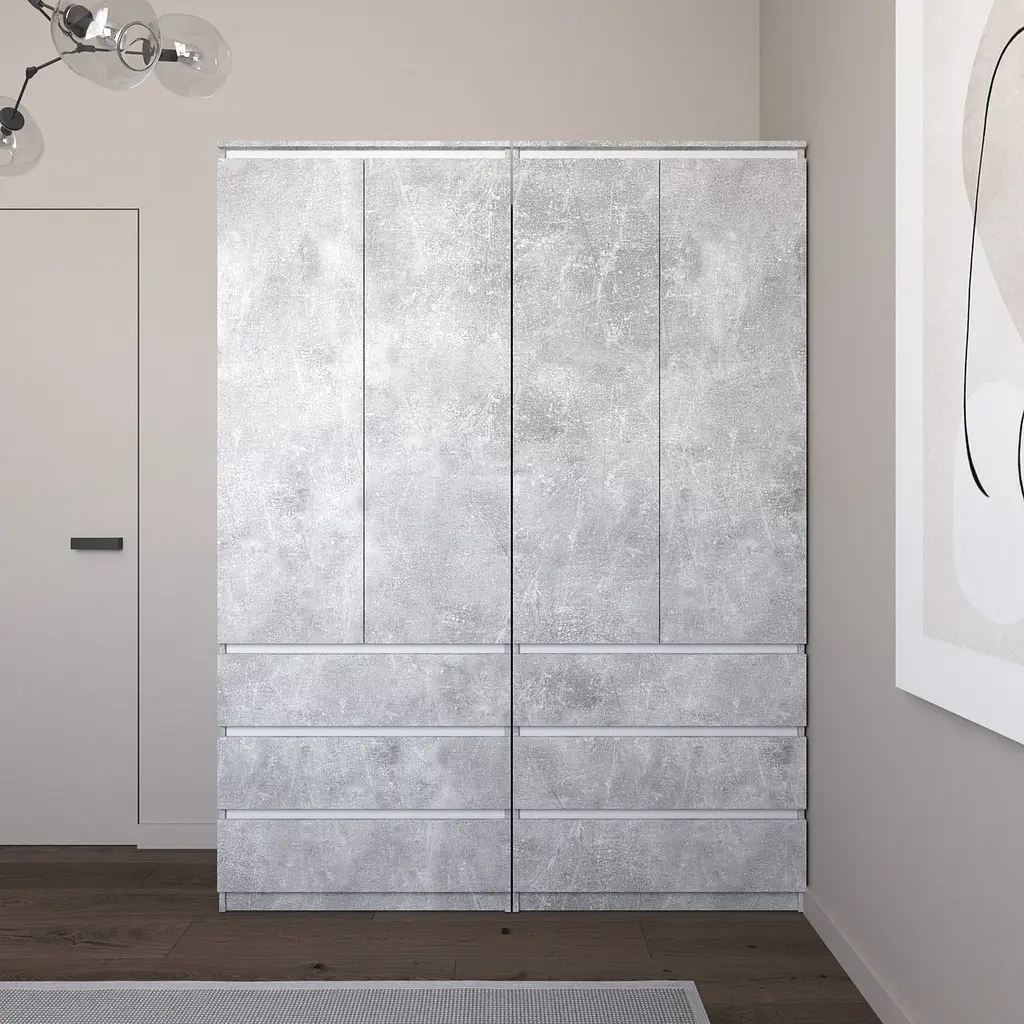 Шафа для одягу Vays зі штангою та полицями, 6 шухляд, комплект з 2 шаф R9+R16 Бетон-Білі планки