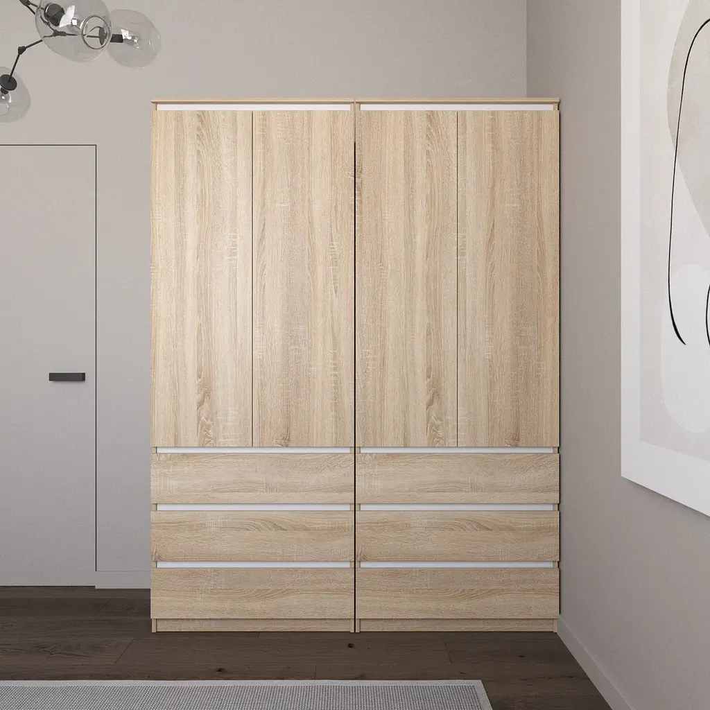 Шафа для одягу Vays зі штангою та полицями, 6 шухляд, комплект з 2 шаф R9+R16 Дуб Сонома-Білі планки