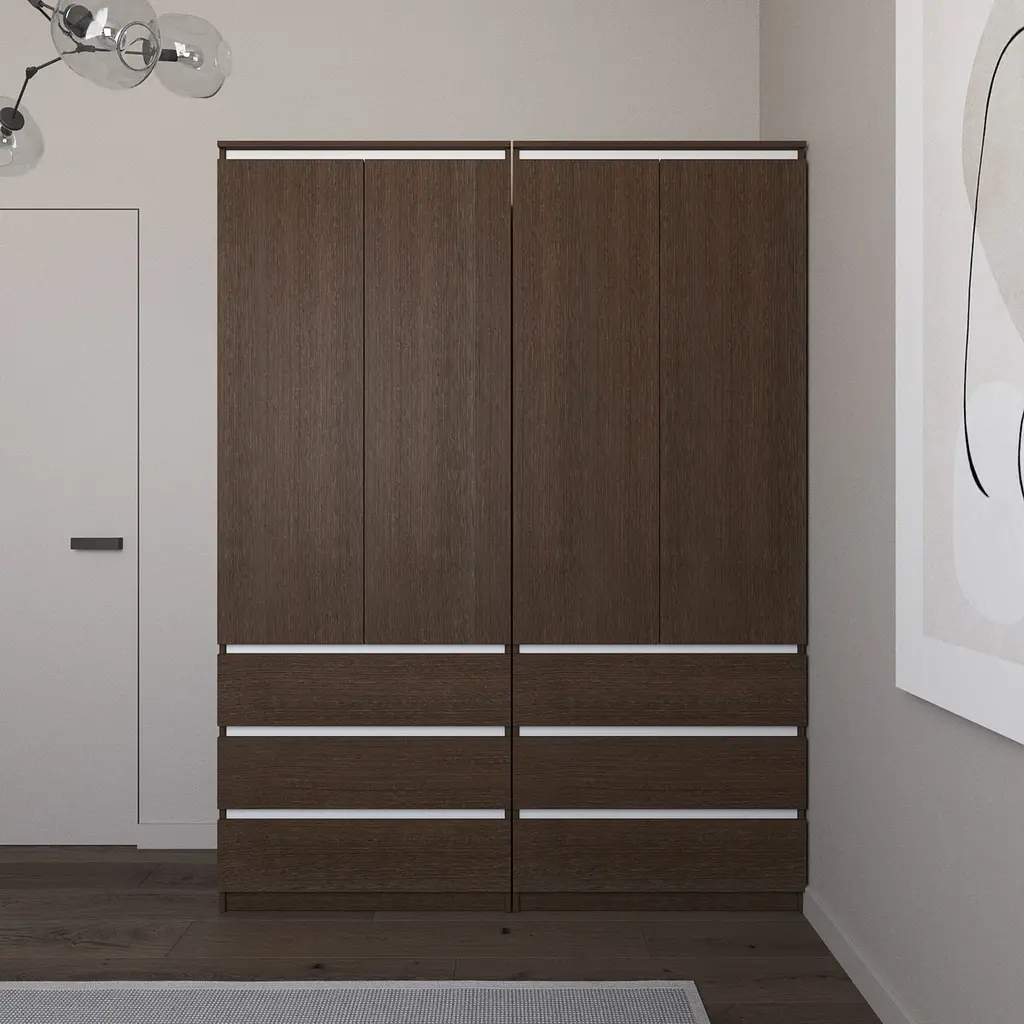 Шафа для одягу Vays зі штангою та полицями, 6 шухляд, комплект з 2 шаф R9+R16 Венге Темний-Білі планки
