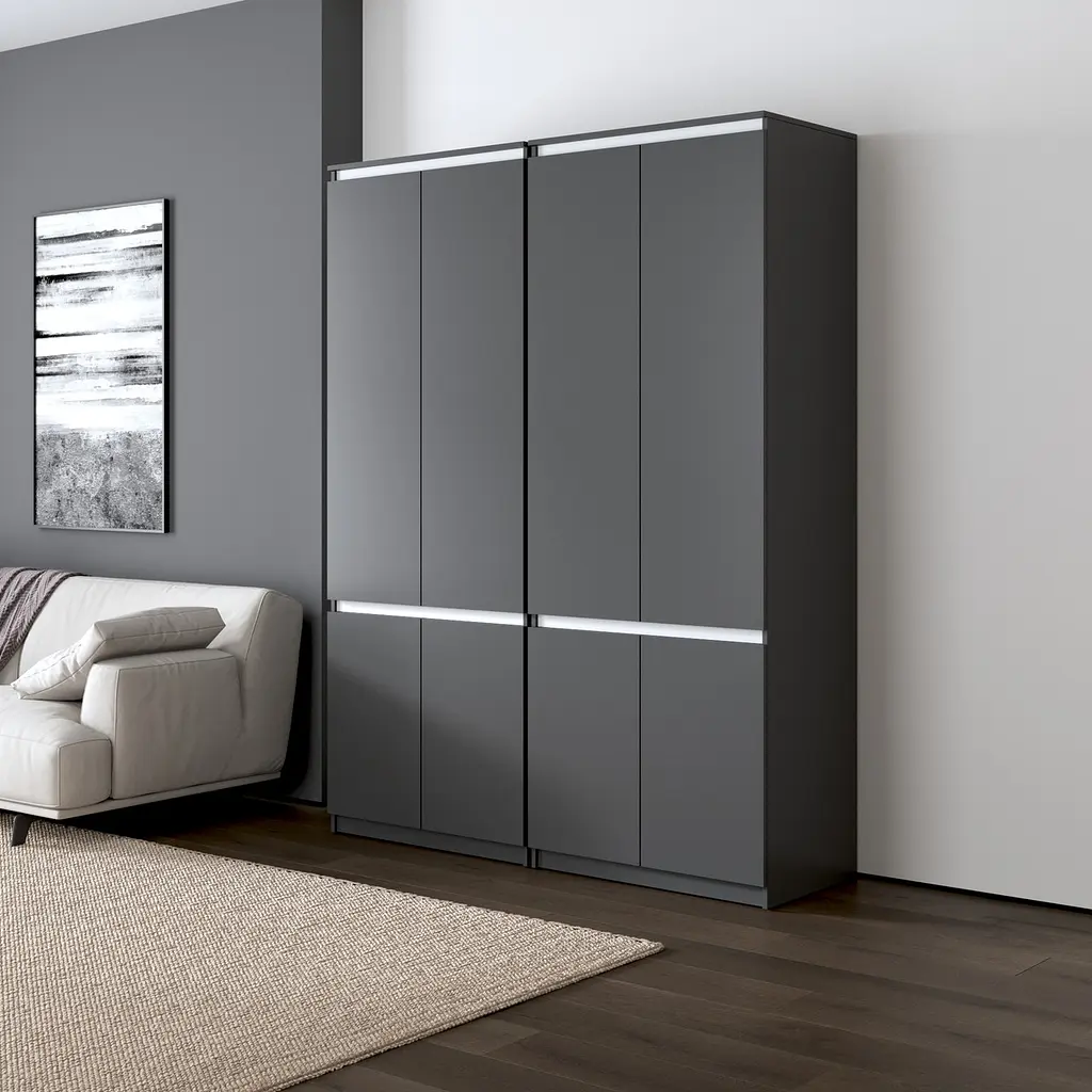 Шафа для одягу Vays, зі штангою та полицями, комплект з 2 шаф R10+R24 Антрацит-Білі планки