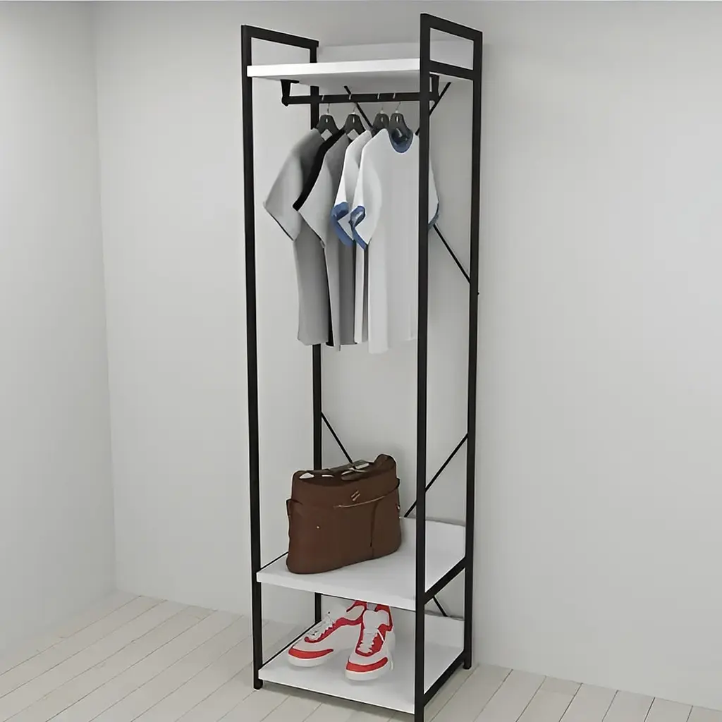 Оновіть свій простір з Шафаа Гардеробом Уні секція 1 серії Конект від Ferrum-decor! Цей сучасний гардероб, виготовлений з високоякісного чорного металу та елегантного білого ДСП, стане ідеальним доповненням до вашого інтер'єру. Завдяки оптимальним розмірам 220x60x50 см, ви зможете з комфортом розмістити весь свій одяг та аксесуари, забезпечуючи порядок і стиль у вашому домі.