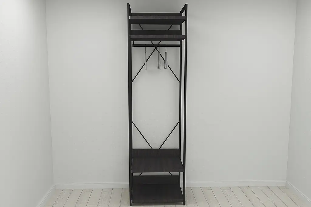 Вам набрид безлад у домі? Шафа Гардероб Уні секция 2 серії Конект – це рішення, яке поєднує в собі стиль та функціональність. Її елегантний чорний металевий корпус та ДСП венге створюють сучасний вигляд, а оптимальні розміри дозволяють зручно розмістити всі ваші речі. Розроблена з урахуванням потреб сучасного життя, ця шафа не лише допоможе навести порядок, але й додасть естетичної привабливості вашому інтер'єру.