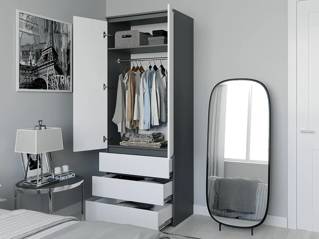 Шафа гардеробна вузька для одягу з 3 шухлядами та штангою всередині з ДСП FT-211