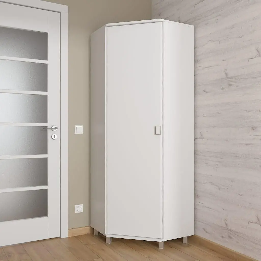 Кутова форма шафи дозволяє зберігати одяг, взуття та інші речі компактно, забезпечуючи легкий доступ до кожного предмета. Це допомагає зберігати порядок і робить використання простору більш ефективним. Вона ідеально підходить для передпокою, спальні чи будь-якої іншої кімнати, де потрібно зберігати багато речей, але немає можливості використовувати великі меблі.