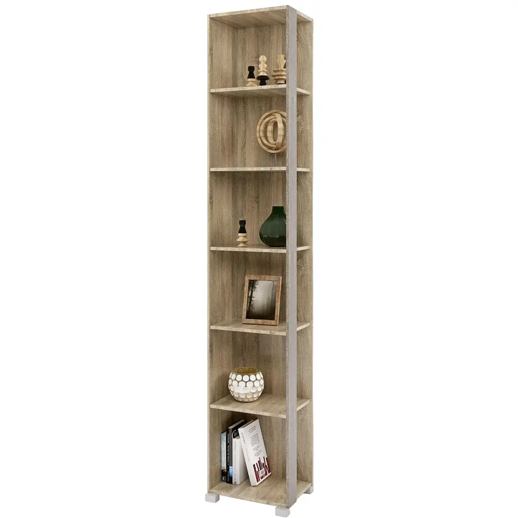 Складається із шести полиць, на яких можуть розміщуватися книги, теки з документами та предмети декору. Такі меблі підходять для вітальні, кабінету, домашньої бібліотеки та службових приміщень. Компактні розміри дозволяють встановити пенал у приміщенні з різною площею.