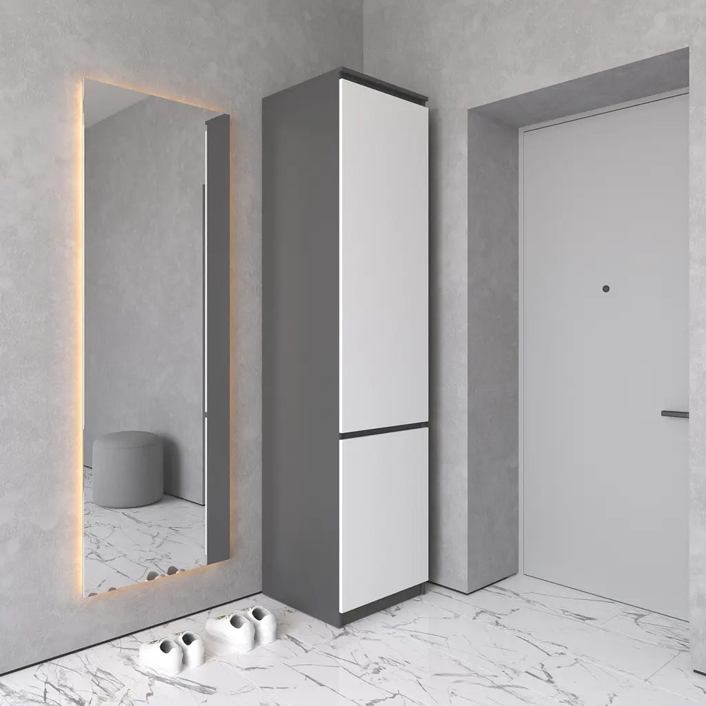 Ця шафа стане ідеальним рішенням для організації порядку в коридорі або передпокої, поєднуючи мінімалізм, практичність і довговічність.