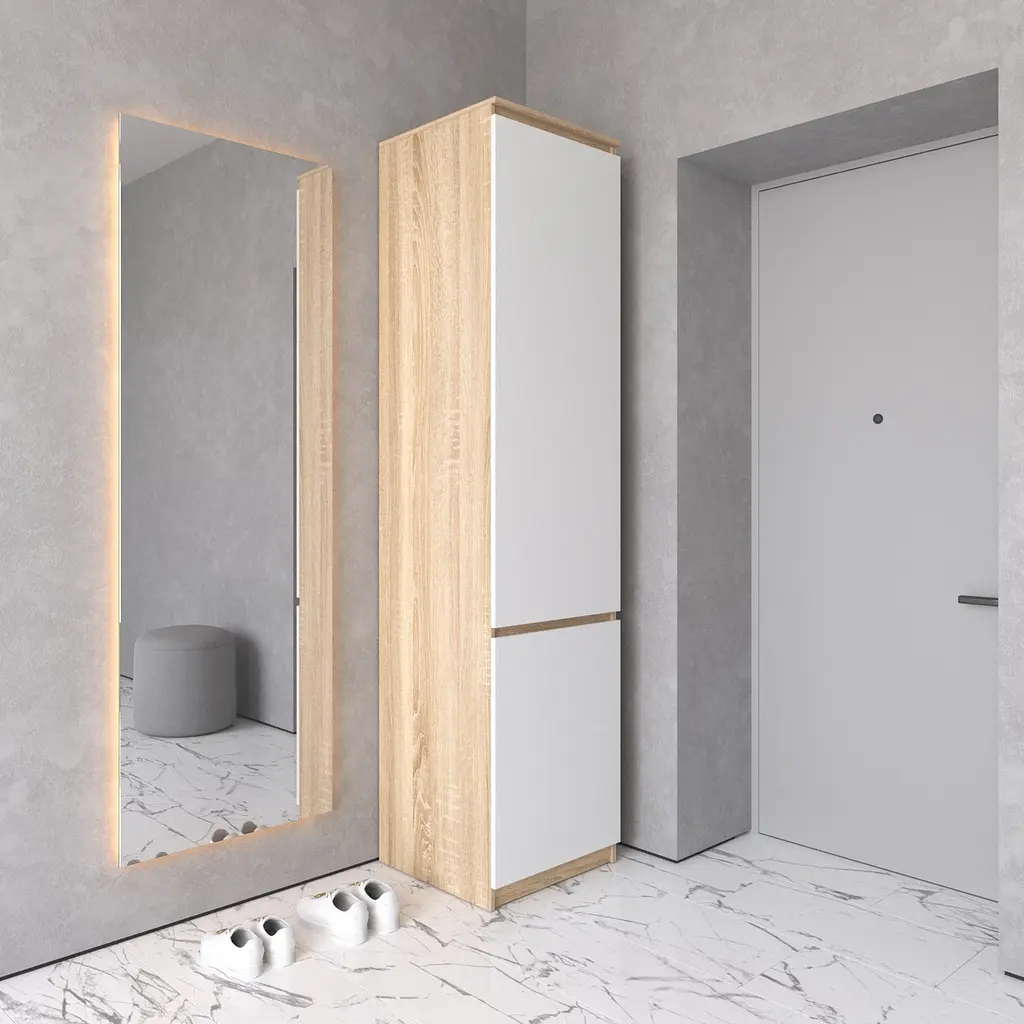Ця шафа стане ідеальним рішенням для організації порядку в коридорі або передпокої, поєднуючи мінімалізм, практичність і довговічність.