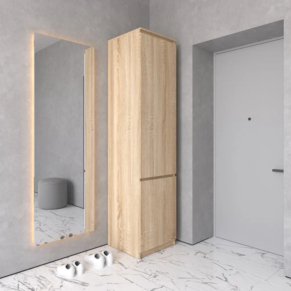 Шафа пенал Vays R-21 - функціональна та стильна шафа для передпокою, виготовлена з якісної ЛДСП. Завдяки компактним розмірам 50×50×211 см, вона ідеально підійде для зберігання верхнього одягу та взуття навіть у невеликому просторі.