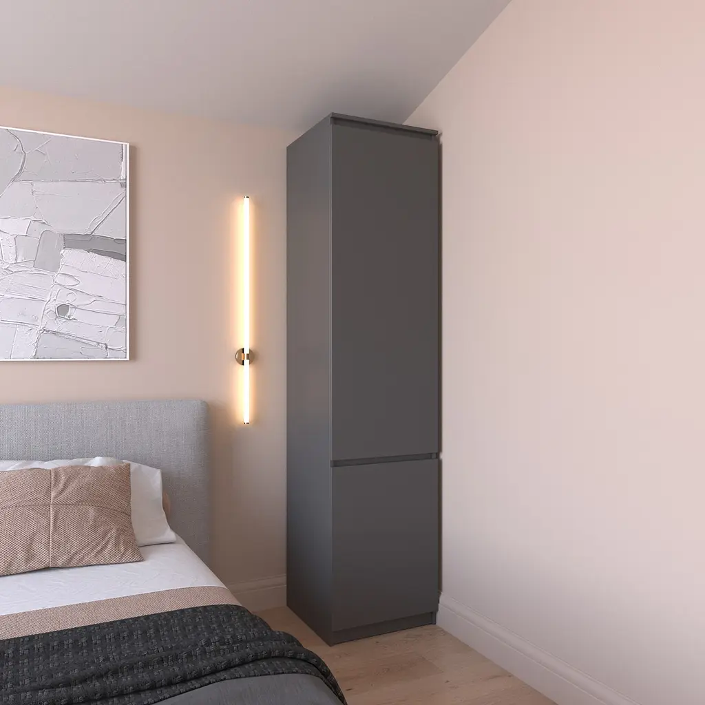 Шафа пенал Vays R-22 - функціональне рішення для організації зберігання в спальні, передпокої чи гардеробній. Завдяки компактним габаритам 50×50×211 см, модель ідеально підходить для невеликих приміщень, забезпечуючи водночас достатньо місця для одягу, білизни та інших речей. Усередині передбачені практичні полиці для впорядкованого зберігання. Стильний фасад без ручок додає виробу сучасного вигляду та гармонійно вписується в мінімалістичний інтер’єр. Виготовлена з міцного ЛДСП, шафа вирізняється довговічністю, легкістю в догляді та надійною конструкцією. Ідеальний вибір для поціновувачів лаконічного дизайну та функціональності.