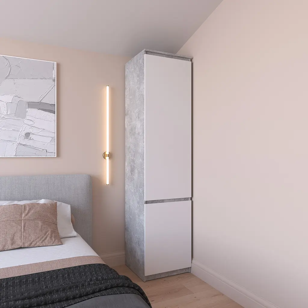 Шафа пенал Vays R-22 - функціональне рішення для організації зберігання в спальні, передпокої чи гардеробній. Завдяки компактним габаритам 50×50×211 см, модель ідеально підходить для невеликих приміщень, забезпечуючи водночас достатньо місця для одягу, білизни та інших речей. Усередині передбачені практичні полиці для впорядкованого зберігання. Стильний фасад без ручок додає виробу сучасного вигляду та гармонійно вписується в мінімалістичний інтер’єр. Виготовлена з міцного ЛДСП, шафа вирізняється довговічністю, легкістю в догляді та надійною конструкцією. Ідеальний вибір для поціновувачів лаконічного дизайну та функціональності.