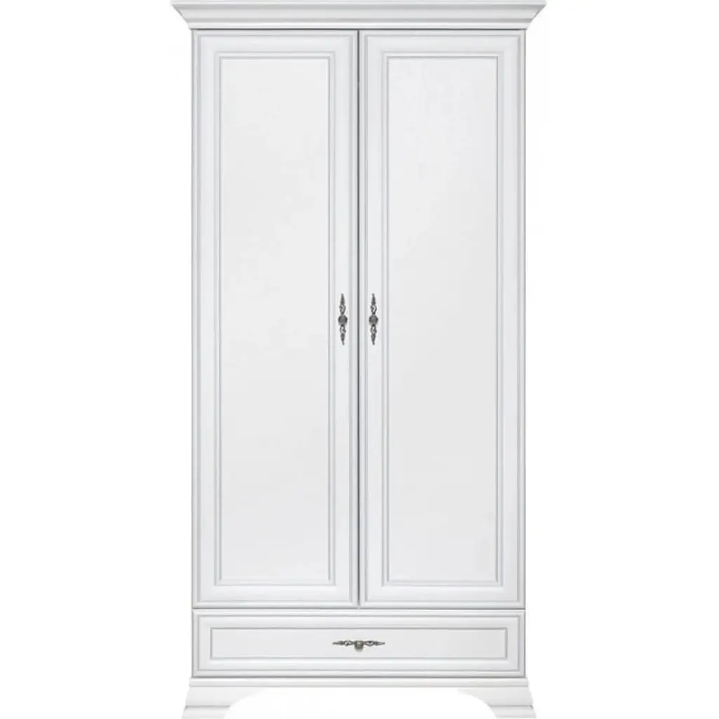 Шафа розпашна в спальню ВМК (БРВ) Кентуки SZF2D1S Білий альпійський Шафа платяного Кентуки SZF2D1S представлено в витонченому кольорі білий альпійський, створюючи атмосферу свіжості і чистоти у вашому просторі. Виготовлена в Україні виробником ВМК (БРВ), вона відрізняється сучасним стилем і високою якістю виробництва. Характеристики: Довжина - 99 см; Глубина - 61 см; Висота - 210 см. Унікальні розміри шафи - довжина 99 см, глибина 61 см і висота 210 см - дозволяють оптимально використовувати простір, не завантажуючи його. Модель обладнана двома дверима, за якими приховується простора вішалка для одягу і один ящик на телескопічних направляючих повного висування для аксесуарів і білизни. Матеріали корпусу і фасаду - ламіноване ДСП і МДФ - забезпечують довговічність і стійкість до пошкоджень, а рейка для вішалок дозволяє охайно зберігати верхній одяг. Ця дводверна шафа увійде до колекції Кентукі, яка славиться своїми міцними і стильними моделями меблів.Доповнює образ шафи функціональна і надійна фурнітура.