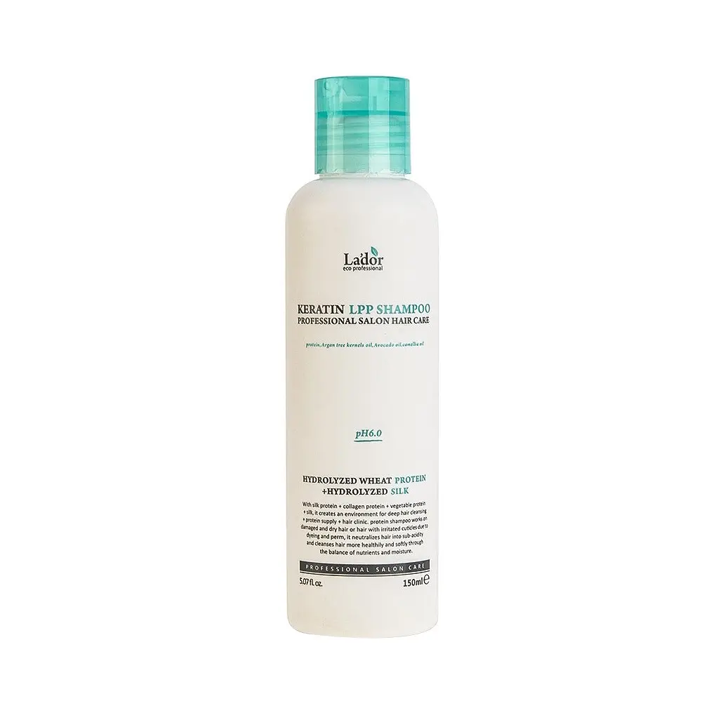 La'dor Keratin LPP Shampoo – кератиновий шампунь, формула якого не містить сульфатів, багата на цінні рослинні олії, містить протеїни пшениці. Уже на етапі очищення засіб забезпечує інтенсивний догляд за локонами і шкірним покривом голови.