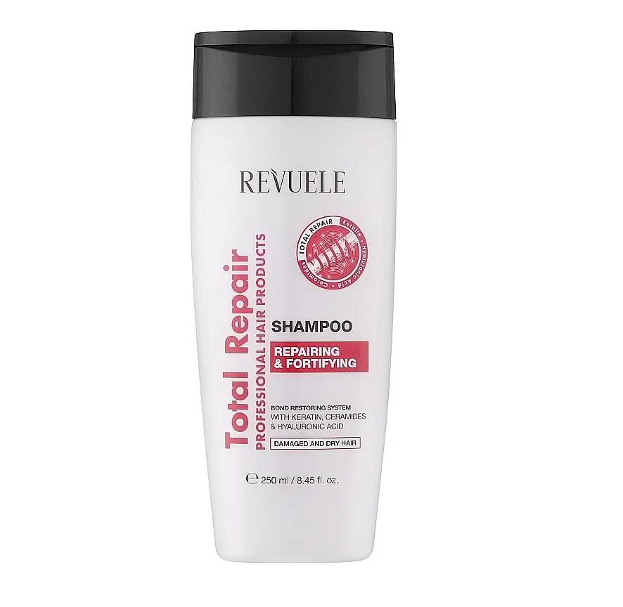 Нова лінія Total Repair розуміє унікальні потреби вашого волосся, поєднуючи потужні властивості кератину, керамідів і гіалуронової кислоти, щоб забезпечити комплексне рішення для всіх проблем волосся.