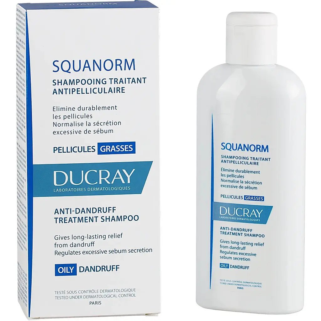 Жирна лупа - це окремий вид, який потребує спеціального лікування. З цим добре впорається Squanorm Kertiol Shampoo від бренду Ducray. Шампунь доповнений компонентами, здатними глибоко очистити шкіру голови та позбавити від лущення і жирної лупи. Продукт також регулює роботу сальних залоз і нормалізує вироблення себуму, зменшуючи ризики його накопичення. Він нейтралізує свербіж, який викликає лупа, повертаючи вам відчуття комфорту та бездоганної чистоти.