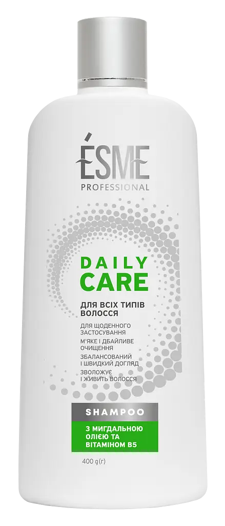 Шампунь Esme (Есмі) Daily Care - забезпечує ефективне, але водночас максимально дбайливе очищення, нейтралізуючи жорсткість води та оберігаючи гідроліпідний баланс шкіри голови.