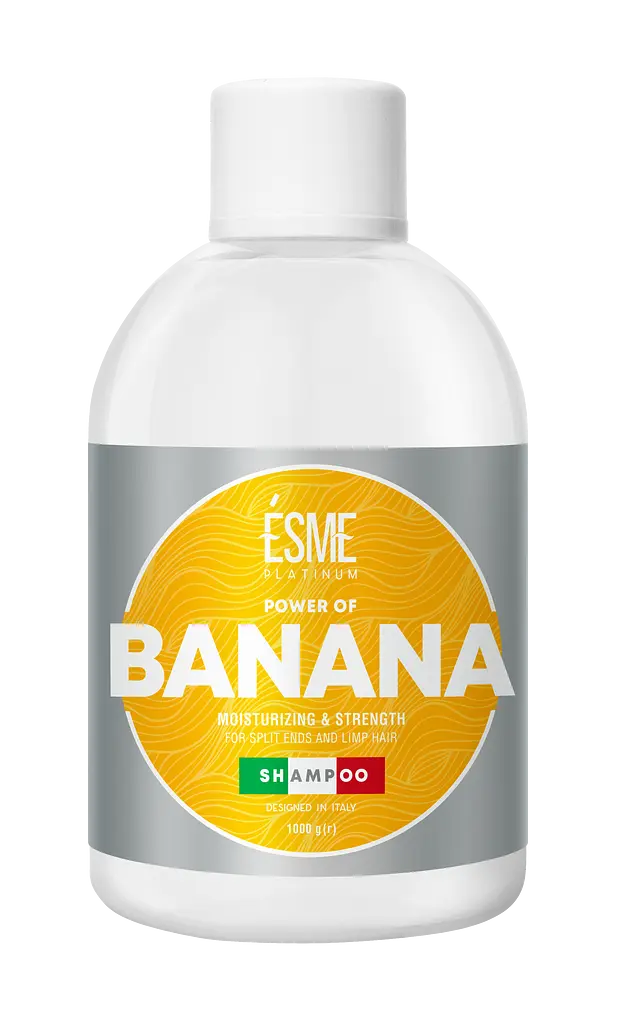 Шампунь Esme (Есмі) Platinum Banana з екстрактом банана – утримує вологу всередині волосяних стрижнів та відновлює їх структуру, а також підтримуює необхідний рівень вологості у структурі волосся.