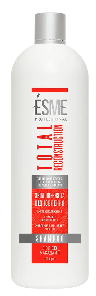 Шампунь Esme (Есмі) Total Reconstruction з олією макадамії – наповнює волосся життєво важливими вітамінами.