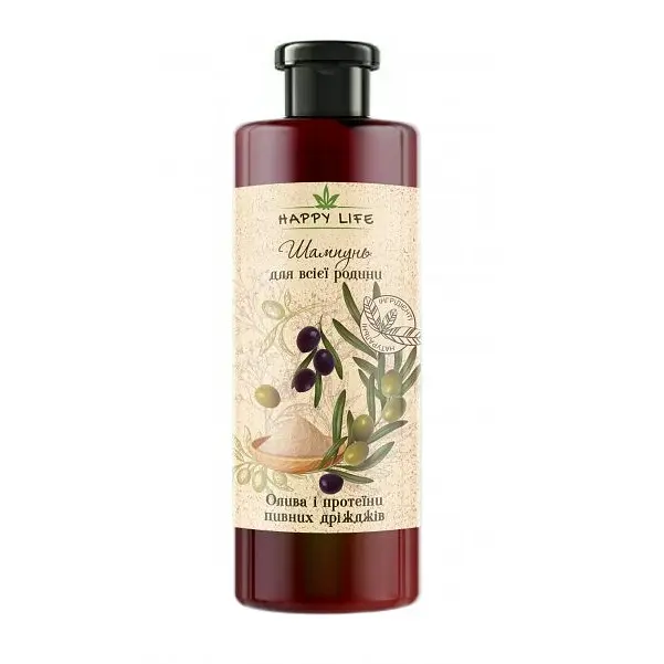 Шампунь Happy life (Хепі Лайф) Олива та протеїни пивних дріжджів дбайливо доглядає волосся.