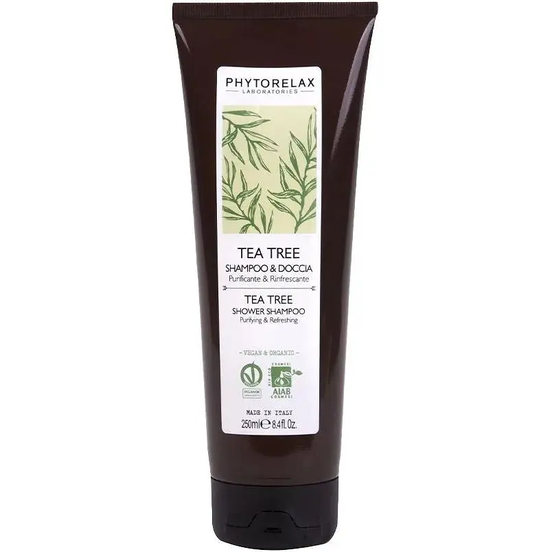 Шампунь-гель для душу Phytorelax Vegan & Organic Tea Tree подарує відчуття комфорту, свіжості та чистоти.