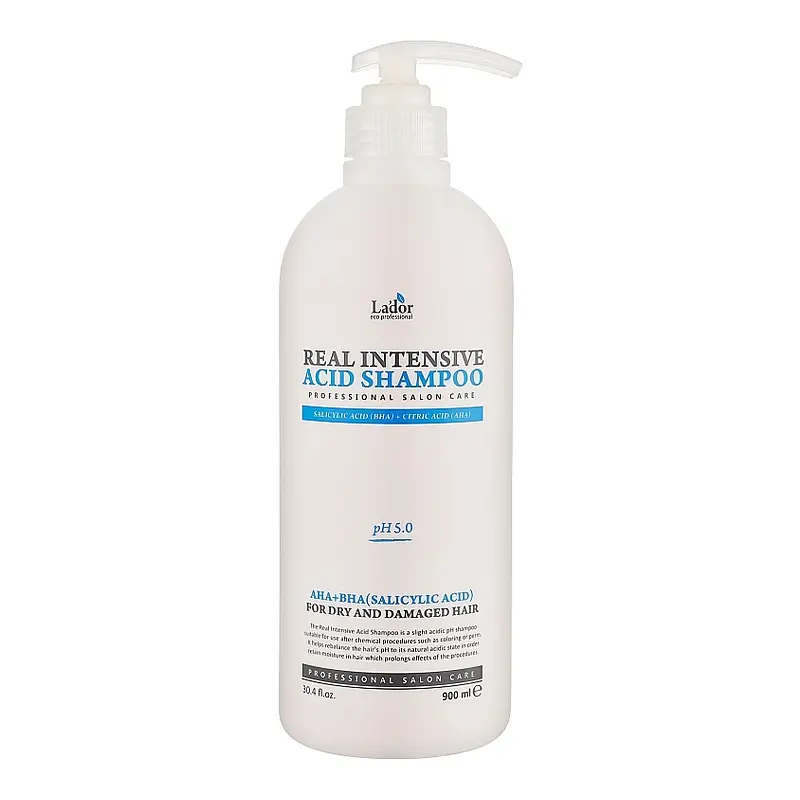 Інтенсивний кислотний шампунь для сухого і пошкодженого волосся Lador Real Intensive Acid Shampoo ретельно промиває шкіру голови, видаляючи ороговілі частинки, шкірне сало та інші забруднення, не викликаючи сухості, відчуття стягнутості та дискомфорту.