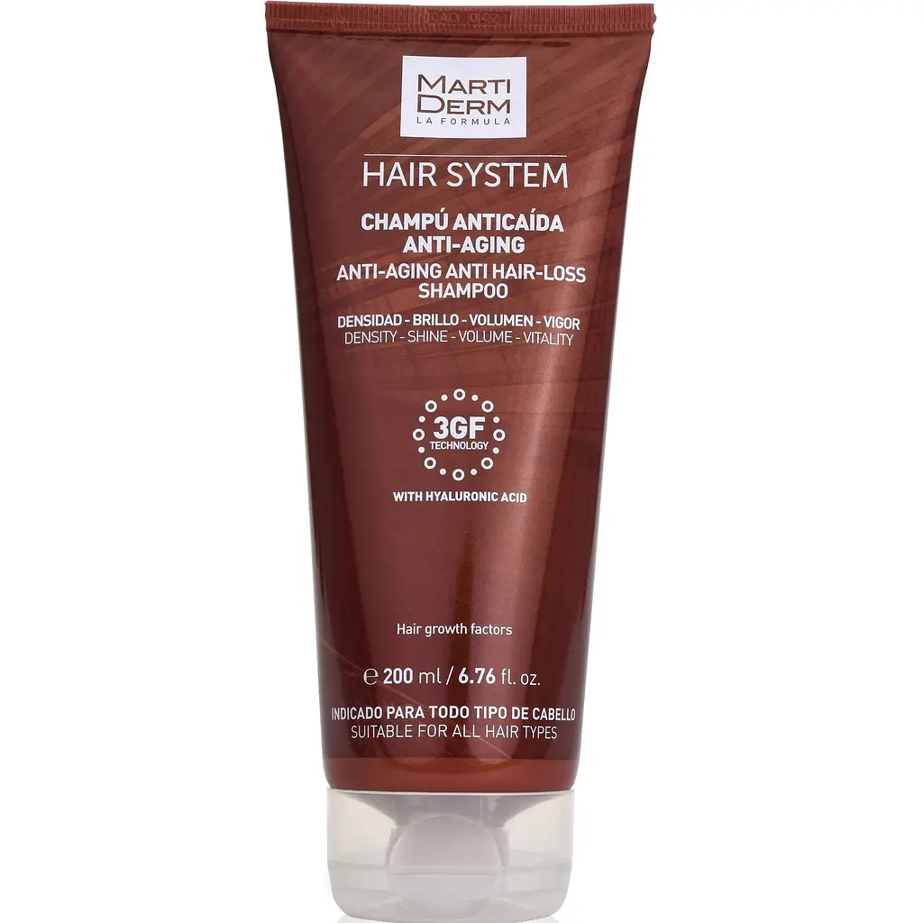 З віком міцність волосяних фолікулів знижується, що може спричинити зменшення об'єму розкішної шевелюри. Фахівці бренда Martiderm вирішили поборотися з цією проблемою та створили спеціальний шампунь від випадання волосся"Антивіковий". Засіб виготовлений за технологією 3GF, яка сприяє подовженню фази росту волосся, збільшенню його густоти та зміцненню. збагачений гіалуроновою кислотою, завдяки чому продукт надає ефективну відновлювальну дію.