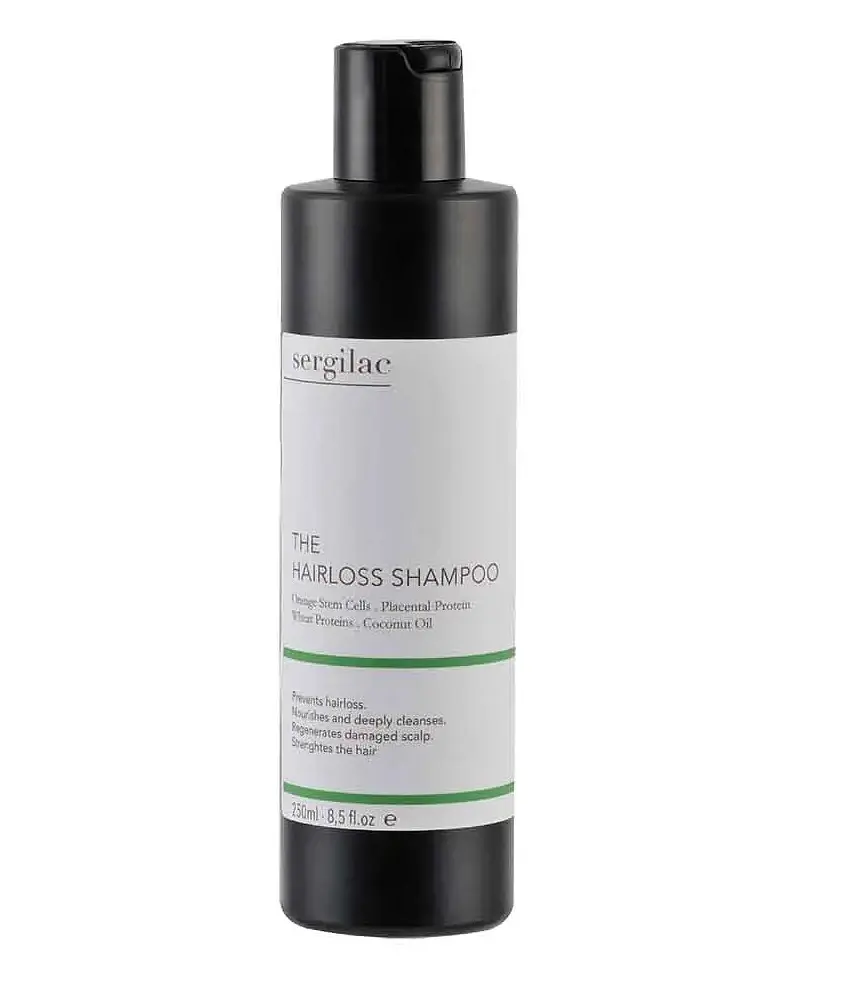 Шампунь проти випадіння SERGILAC делікатно очищає шкіру голови і волосся від забруднень. Продукт містить стовбурові клітини апельсина і білок плаценти. Шампунь живить волосяні цибулини і зміцнює коріння.