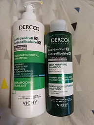 Шампунь Vichy Dercos можу рекомендувати, якщо потрібно прибрати лупу але шкіра голови жирніє навіть трохи більше ніж зі звичайним шампунем. Користуюсь ним майже 3 місяці, два рази на тиждень комбіную з шампунем-скрабом цієї ж фірми. З переваг зазначу, що лупа майже повнітю прибралась, декілька лусочок помічаю коли розчісую але не критично. Він не агресивний, довжину не пересушив. Колір жовтий, дуже схожий на Сульсену, але рідший і немає специфічного запаху. З мінусів те, що волосся потрібно мити кожен день, бо швидко жирніє. Раніше могла мити через день зі звичайним шампунем.