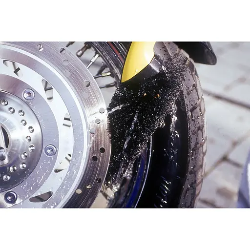 Спосіб застосування: занурте щітку в мийний розчин або воду. Ретельно очистьте кожну частину диска, звертаючи особливу увагу на обід, спиці та важкодоступні місця. Після завершення процедури, промийте диски чистою водою і протріть мікрофібровою серветкою для досягнення блиску. При необхідності, повторіть процес для досягнення кращого результату