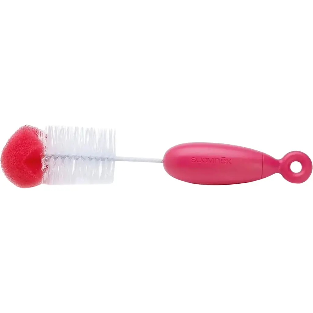 Щітка для миття пляшечок Suavinex ідеально підходить для миття пляшок і сосок, завдяки наявності великої і маленької щіточки.