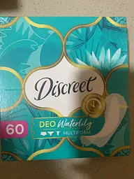 Щоденні прокладки Discreet Deo Waterlily, які підходять до всіх типів білизни, подарують вам відчуття свіжості та краси, хоч би який стиль ви вибрали. Ці щоденні гігієнічні прокладки дозволяють шкірі дихати, забезпечуючи свіжість та комфорт до 12 годин. Вони такі тонкі, що ви їх навіть не відчуватимете. Фірмовий аромат водяної лілії дарує відчуття свіжості та жіночності. З цими прокладками ви відчуватимете впевненість протягом усього дня, в будь-якій ситуації.