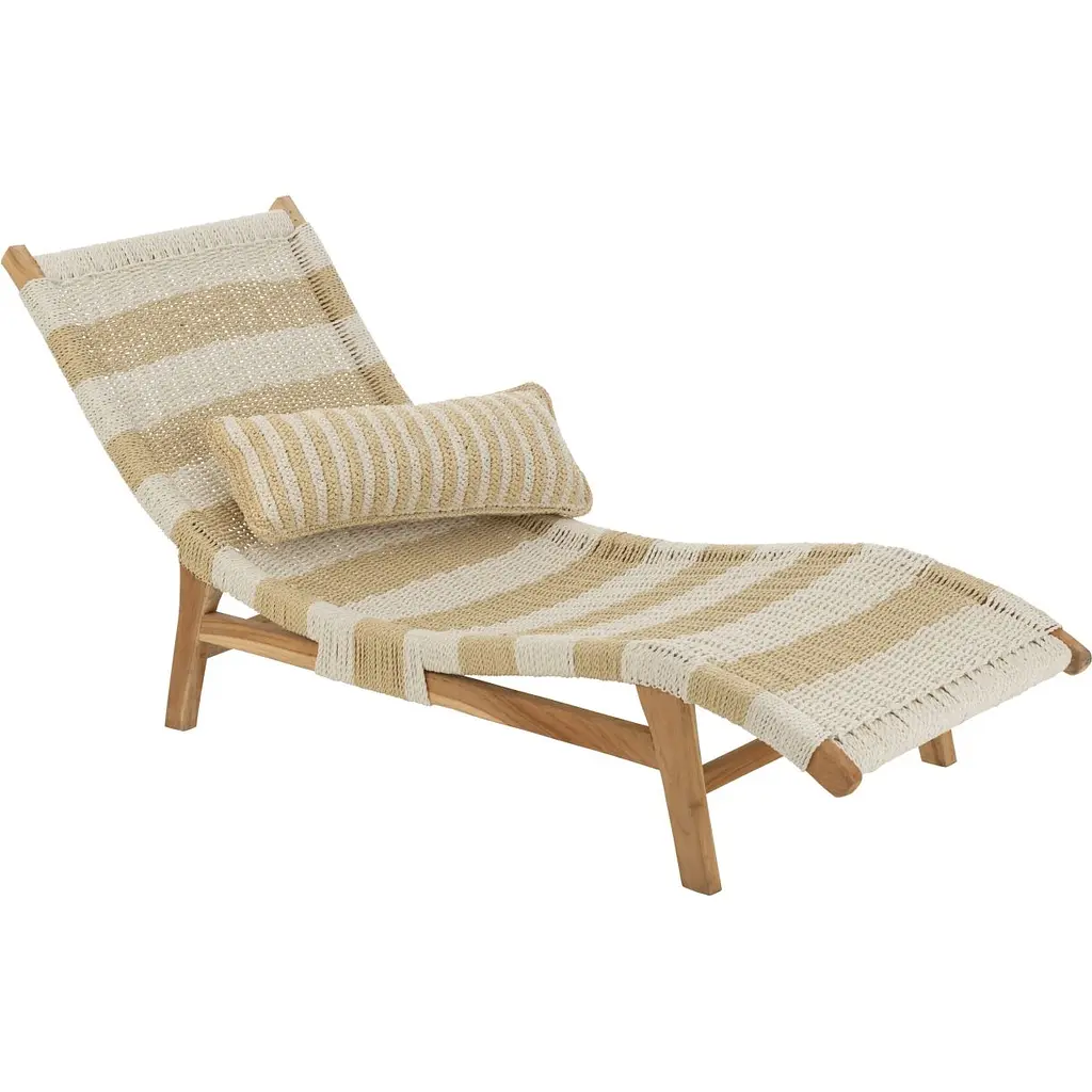 Оздоблений джутовою мотузкою, шезлонг не тільки естетично привабливий, але й забезпечує комфортний відпочинок навіть у спекотні дні. Джутова мотузка додає виробу природного шарму, а завдяки своїм особливим властивостям, тканина легко очищується та зберігає свій первісний вигляд протягом тривалого часу.